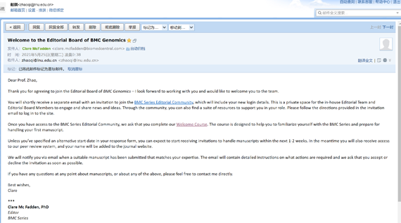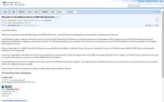 近日,开元官方网页版计算机与软件工程学院教授赵琪收到BMC出版集团Dylan Smith博士邀请,受邀分别担任BMC Genomics和BMC Bioinformatics编委。