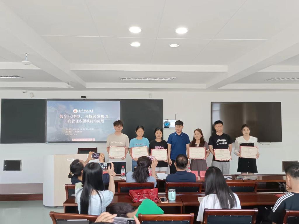 还有其他多名研究生同学在报告会上分享了他们的研究成果,各位评审老师与参会的研究生就分享的内容进行交流、点评,并评选出了此次学术研讨会的优秀获奖者。同学们的报告涉及工商管理学科多个前沿领域,研究思路清晰,成果创新性强,充分展现了新时代管理学院学子的风采。