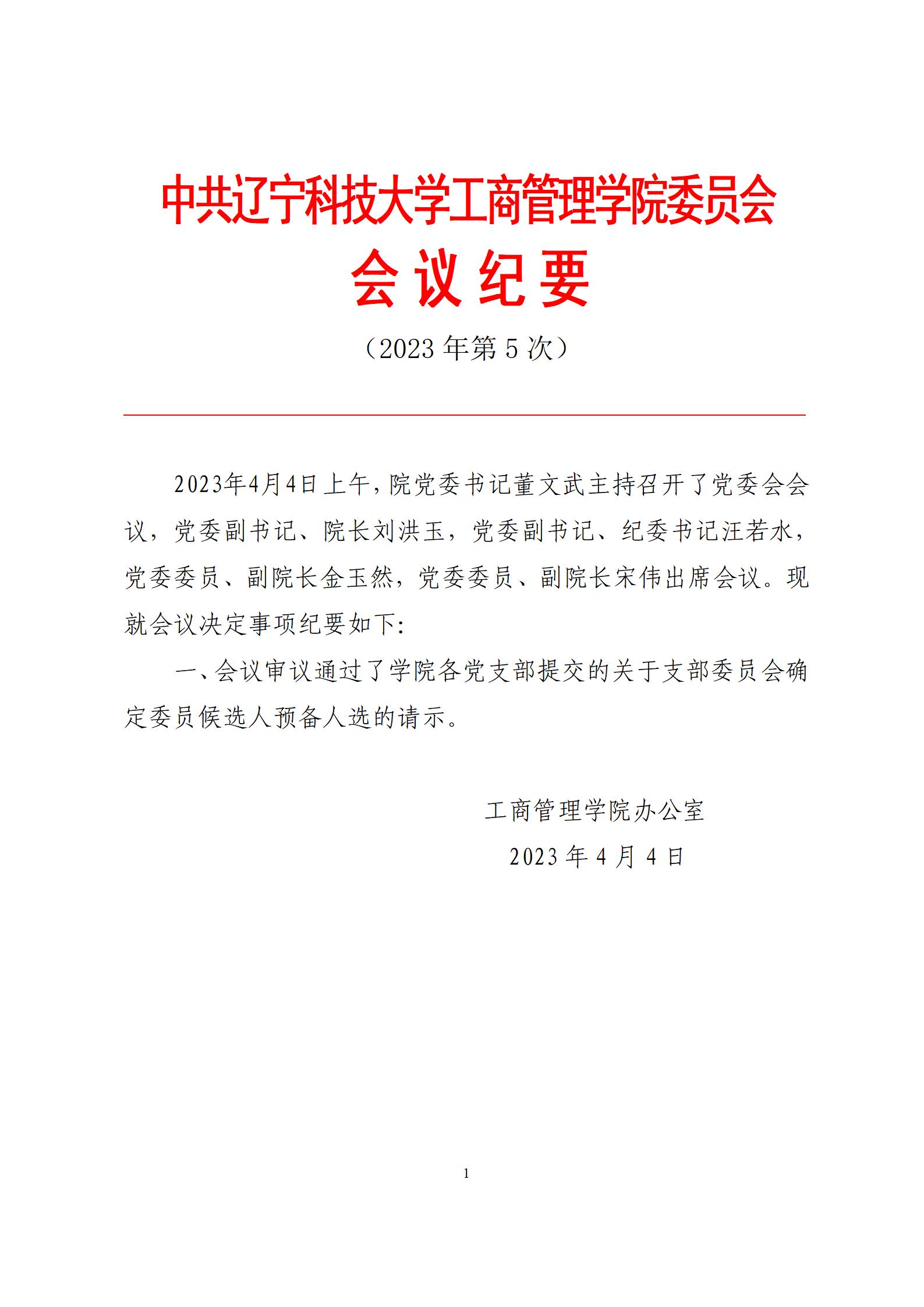 中共开元官方网页版工商管理学院委员会会议纪要(2023年第5次)