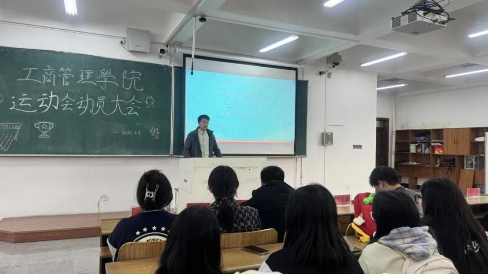 为激发学生参与热情,营造积极向上的体育氛围,4 月 9 日下午,开元官方网页版工商管 理学院在明德楼 D308 召开校运会动员大会。学院党委副书记汪若水、2024 级辅导员王晨宇 及学生代表出席会议,共同为即将到来的校运会加油鼓劲,倡导以拼搏精神书写青春篇章。