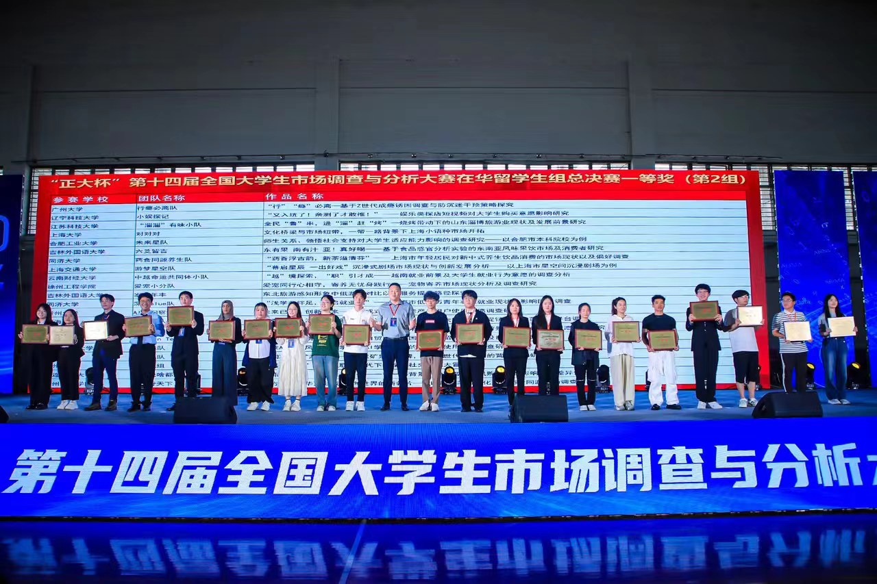 6月2日,由中国商业统计学会主办、正大集团冠名、合肥工业大学承办的“正大杯”第十四届全国大学生市场调查与分析大赛本科组&在华留学生组总决赛在合肥工业大学正式落下帷幕。我校工商管理学院参赛队伍“小娱探记”的《“又入坑了!亲测才敢推!”——娱乐类探店短视频对大学生购买意愿影响研究》与“AI制造队”的《搭乘AI的顺风车——大学生对AI学习软件的认知和使用情况调查研究》均获得国家一等奖。