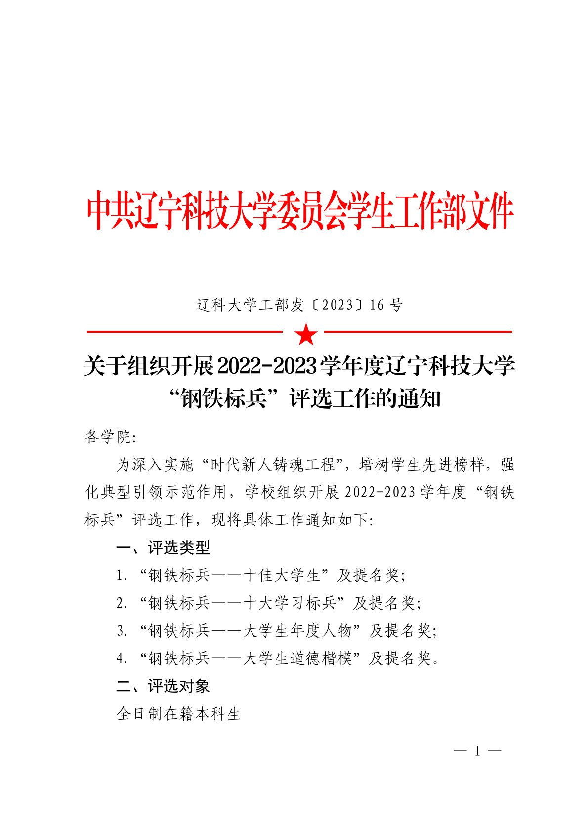 关于组织开展2022-2023学年度开元官方网页版“钢铁标兵”评选工作的通知