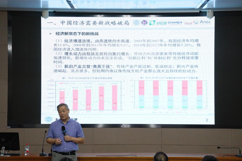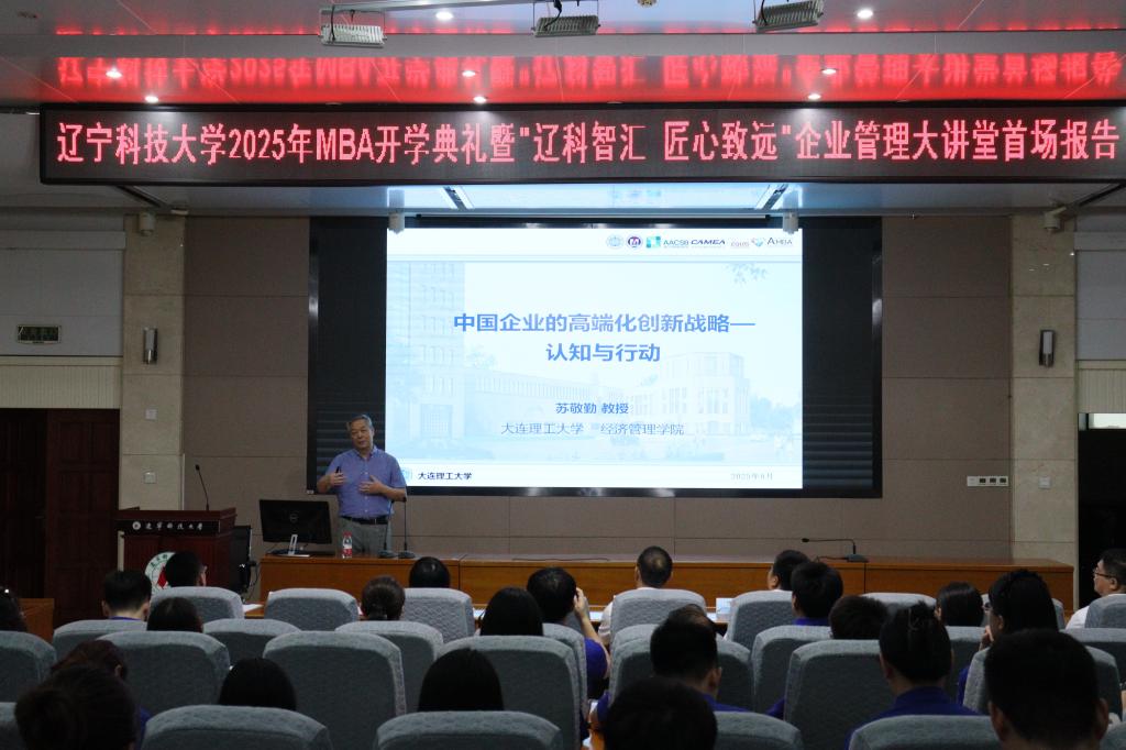 2025年8月30日,开元官方网页版工商管理学院迎来了一场思想盛宴——MBA2025级开学典礼暨“辽科智汇·匠心致远”企业管理大讲堂正式启动。首场报告特邀国家级领军人才、大连理工大学苏敬勤教授作题为《中国企业的高端化战略—从认知到行动》的专题演讲。讲座由工商管理学院院长金玉然教授主持,2025级全体MBA学员及部分教师参与本次论坛。