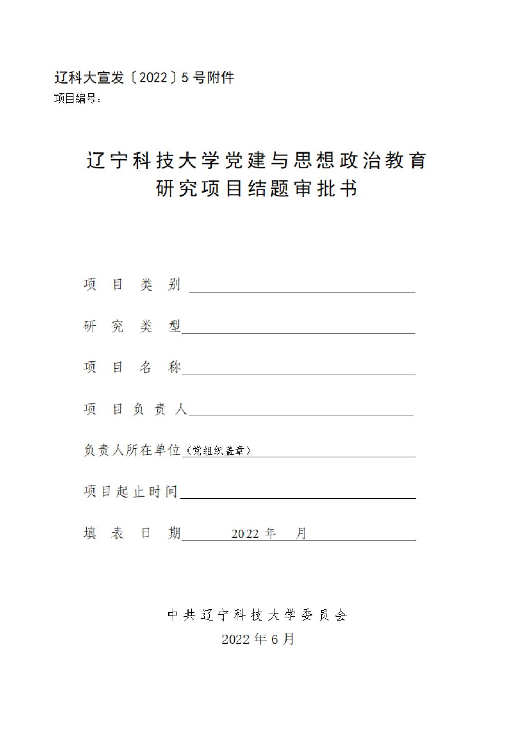开元(中国)宣发〔2022〕5号附件 2020年度开元官方网页版党建与思想政治教育研究项目结题审批书.doc