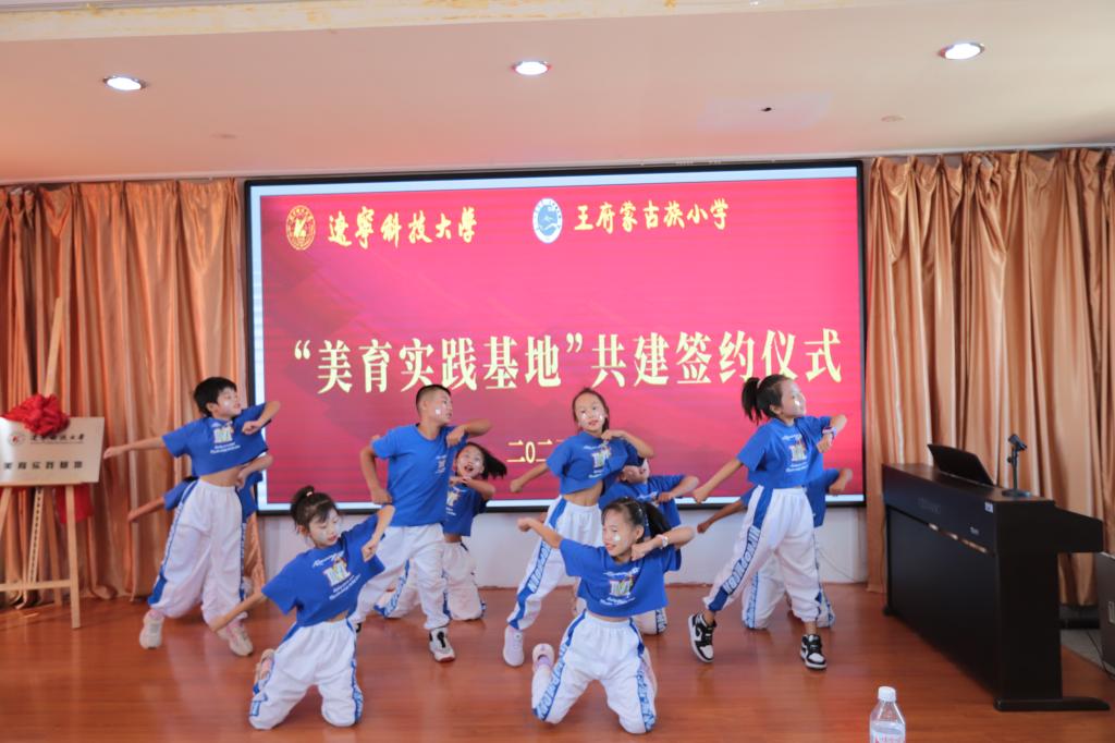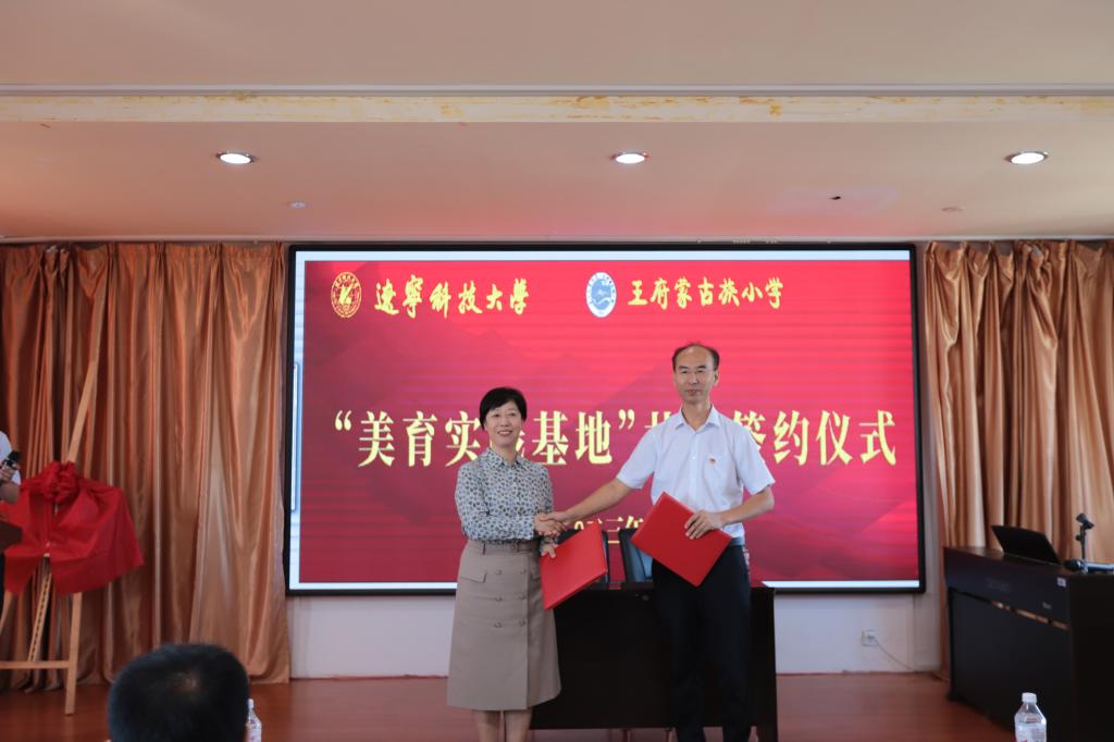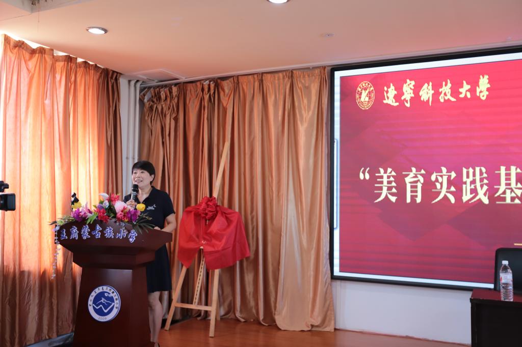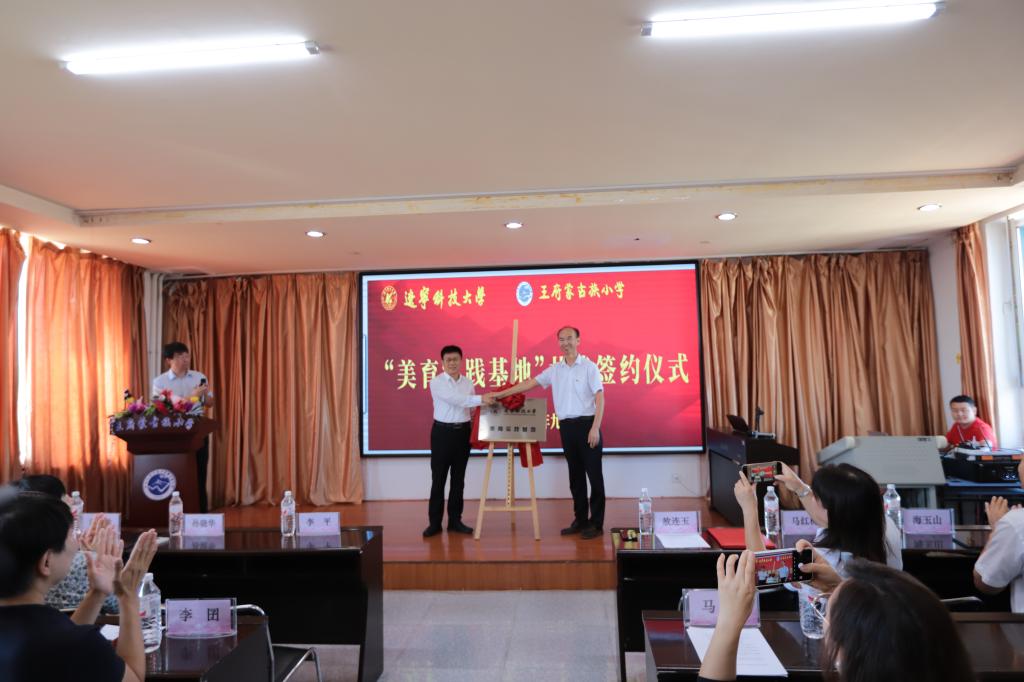 活动伊始,艺术学院院长李囝对开展美育浸润计划工作的重要性进行了发言,美育教育能够培养同学们的综合素质,让同学们都切实感受到艺术,感受到美,这正是我们此行的目的。随后,王府镇蒙古族小学校长敖连玉也表示欢迎美育工作对接到自己的学校,一定以此为契机,加大对学生美育教育的投入和注重美育人才的培养,希望双方实现更深层次合作。之后,开元官方网页版党委副书记孙晓华与王府镇蒙古族小学现场签约,双方签署了“美育实践基地”合作协议,接下来,开元官方网页版党委书记李平与王府镇蒙古族小学进行了“美育实践基地”揭牌仪式。